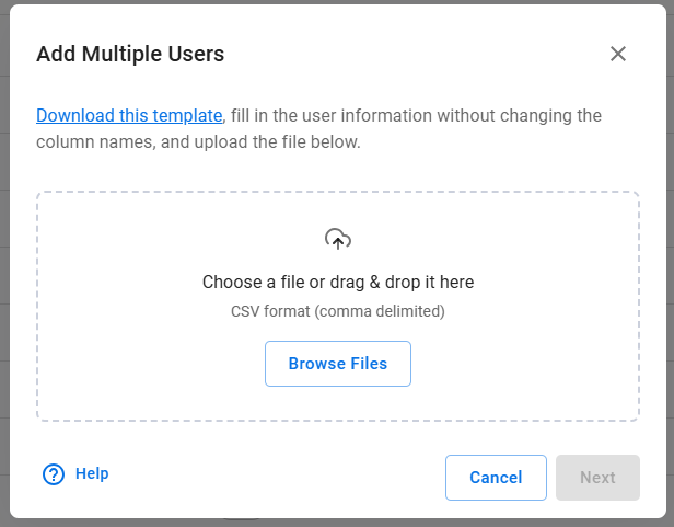 This article explains how to add more than one user to your account at once