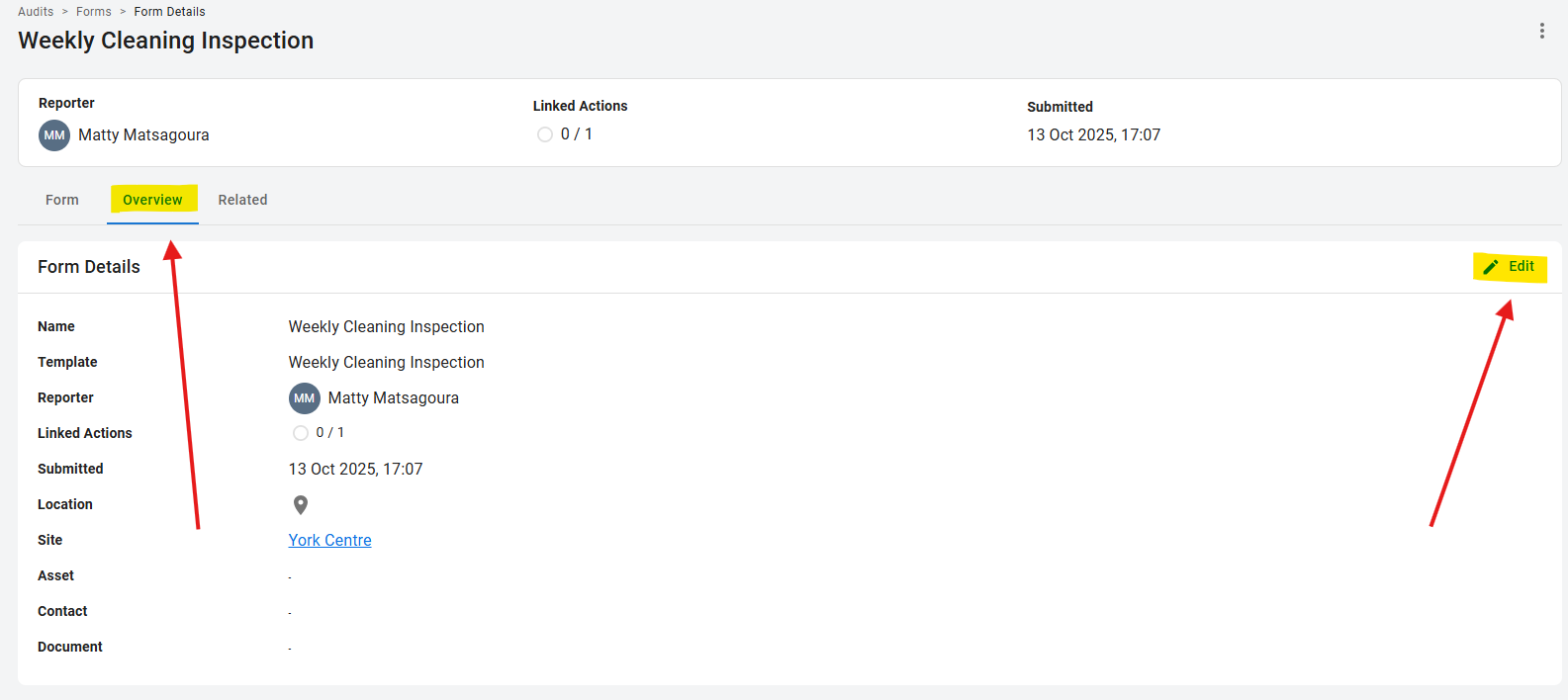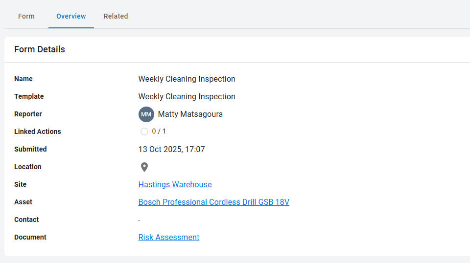 Your completed audit is now linked to a Site/Asset/Contact/Document!