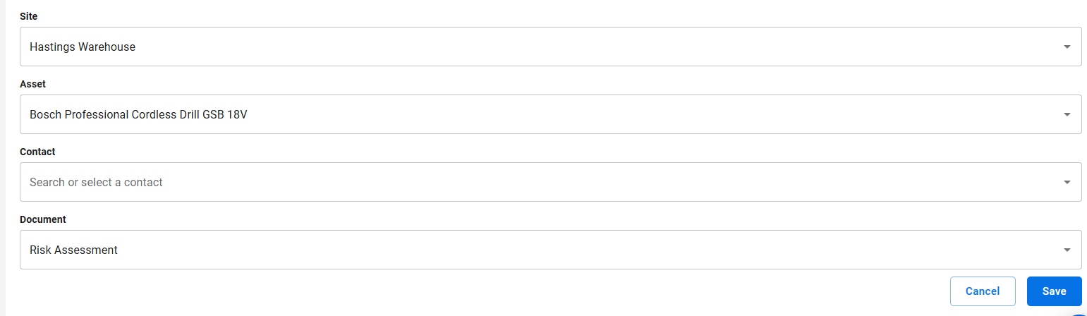 Choose the form you want to link to a Site/Asset/Contact/Document.