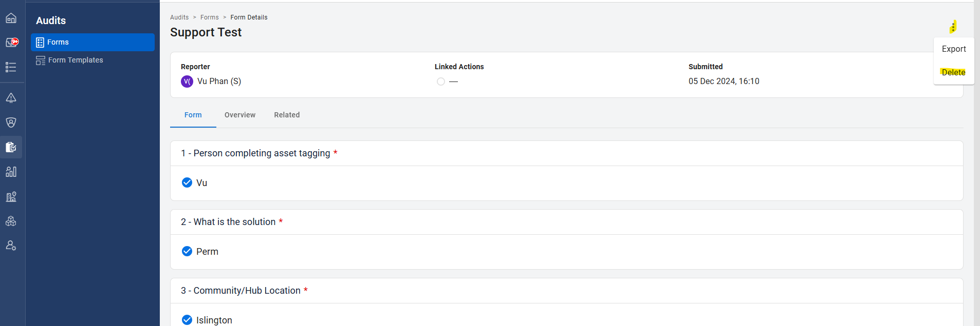 How to delete submitted forms (Audits)