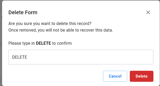 You must type "DELETE" to confirm you want to delete the submitted form.