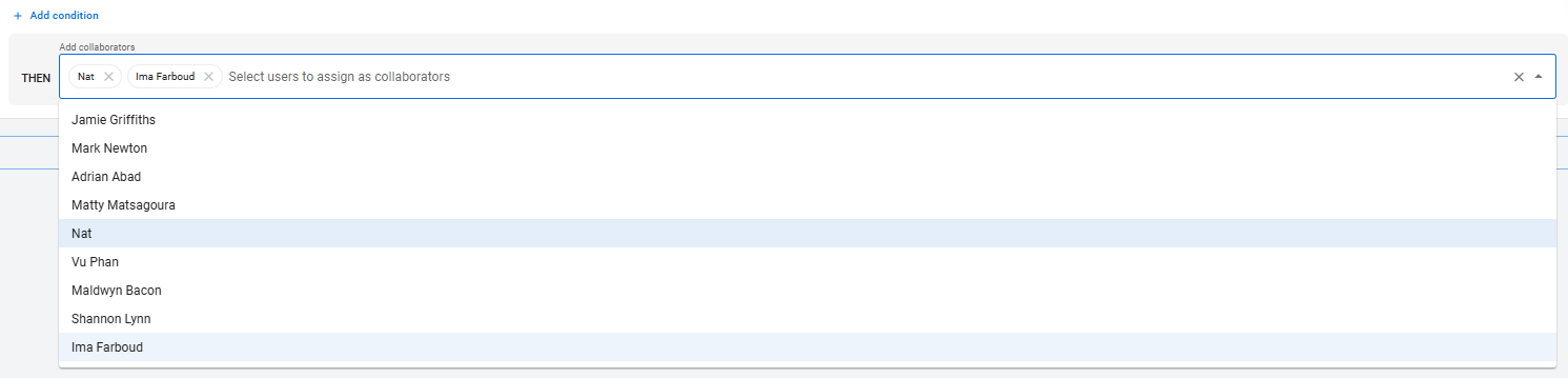 Add one or more users to be added as collaborators when those conditions are met