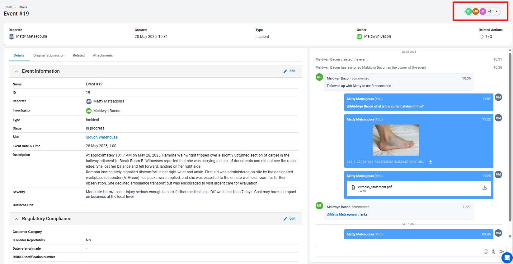 View the full Event record, including the Details tab, Original Submission tab, Related tab, Attachments tab and Activity feed.