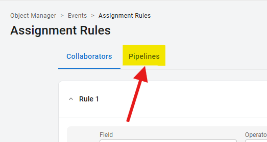 This is where you will create assignment rules to ensure that new Events are automatically routed to the correct pipeline when they are submitted.