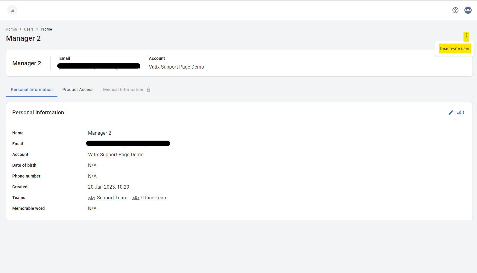 Click on the three dots in the top right-hand corner, and select 'Deactivate user'.