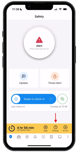 5. To extend the timer, tap Change in the countdown ribbon. To stop it, tap Stop.