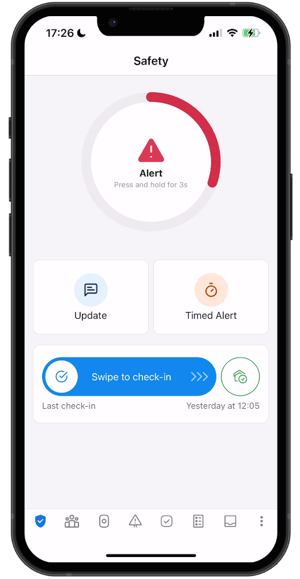 On the Safety tab of the Protector Mobile app, you can discreetly activate the alarm to initiate a two-way voice call with either our highly trained responders at the Alarm Receiving Centre (Vatix 24/7 Monitoring) or your designated escalation contacts (Self-Monitoring).