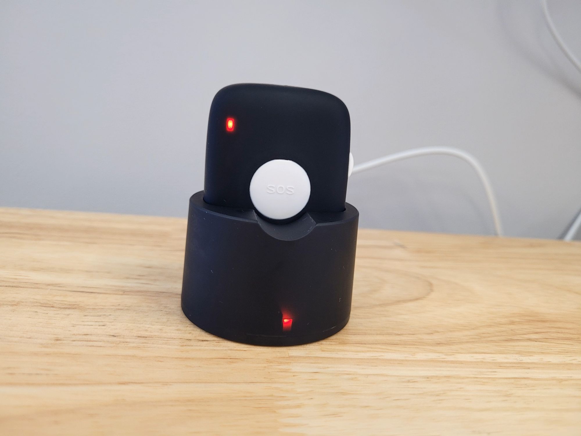 If your charging dock has a solid red LED present, please place your Safe Pro into the charging dock, ensuring it is pressed all the way down to ensure the charging contacts on the device touch the metal pins inside of the charging dock.