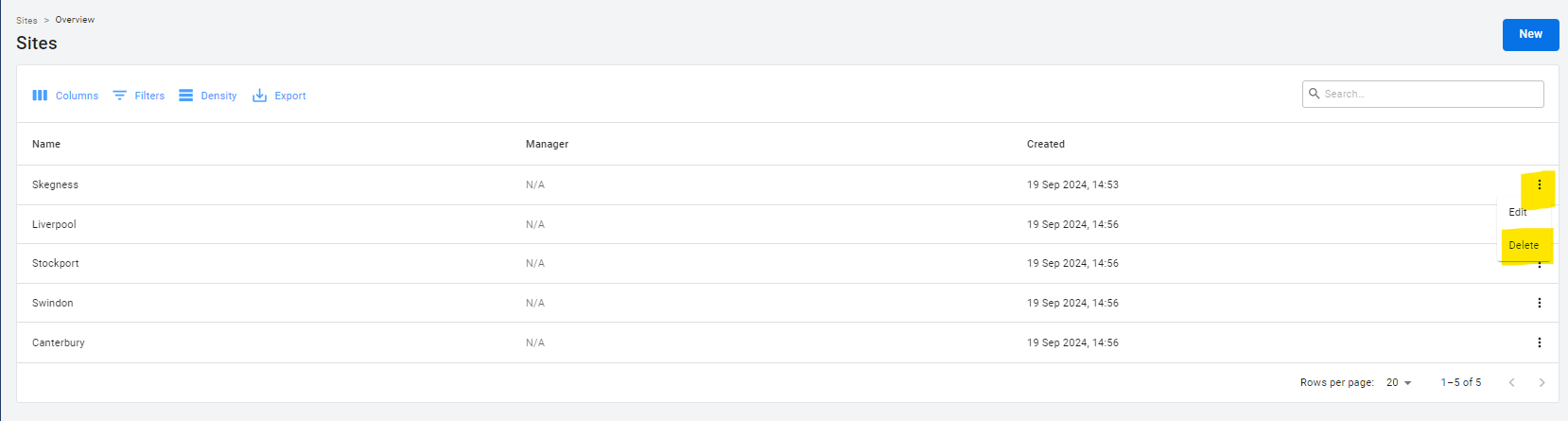 How to remove a site This article explains how to delete sites from your account Click on the 'Sites' button in the navigation bar. Go to the incident you would like to remove, click on the three dots on the right, and click 'Delete'.