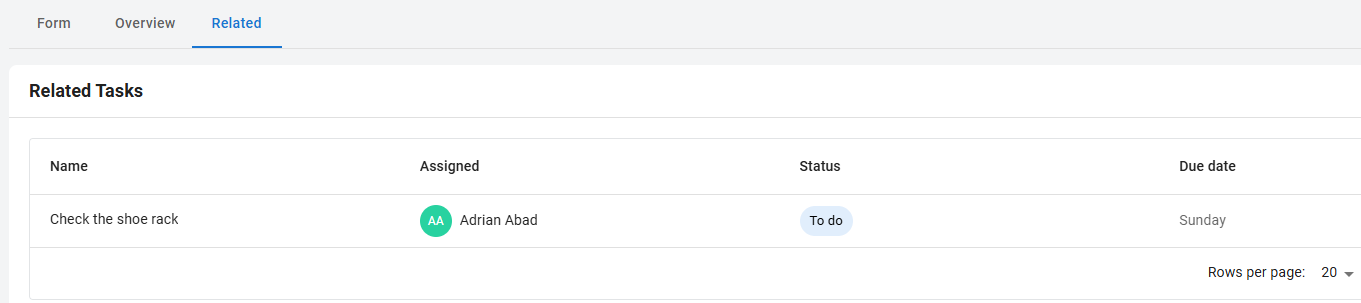 The Related Tab will show any follow-up tasks linked to your form. You can add more tasks by clicking on 'New Task' in the top right.