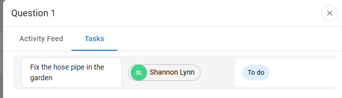 To set a follow-up action, click on a question, then select 'Tasks.' Now, you can click 'Add new task' and assign an action to a user. This task will be linked to the form.